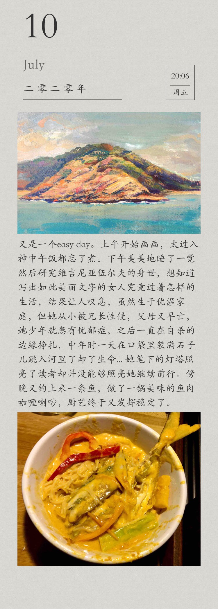Another easy day. I started painting in the morning and forgot to make lunch till afternoon.