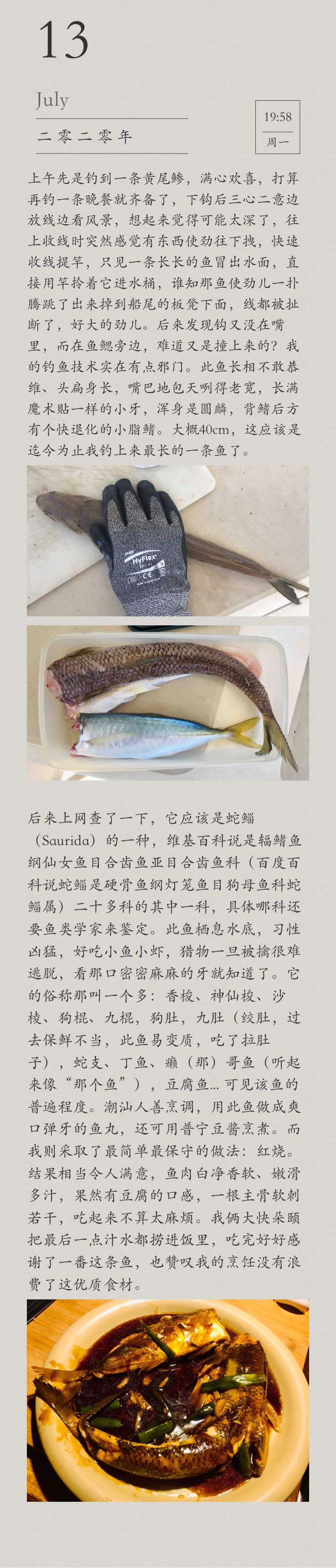 Later, I looked it up on the Internet. It should be a species of Saurida a genus of fish in the family of Synodontidae. There are 23 recognized species in this genus: I need an ichthyologist to identify this fish. It is also called lizardfish. They are voracious carnivores and usually live on sandy or muddy bottoms preying small fish and shrimp. Once the prey is caught, it is difficult to escape, thanks to the dense teeth. Its Chinese names are more than one: Xiang Suo, fairy Suo, Sha Leng, dog sticks, nine sticks, dog belly, nine belly (upset belly, in the past due to improper storage, this fish is easy to deteriorate, causing diarrhoea), snake branch, Ding Fish, Lai (Na) ge fish (sounds like ‘that fish’), tofu fish… so you know how common the fish is. Canton people are good at cooking, they use this fish to make refreshing and springy fish balls, which can also be cooked with Puning bean paste. But I chose a simple and conservative way: braised. The result is quite satisfying. The meat is white, soft, tender and juicy. It really has the texture of tofu. It has one major bone with a few soft bones, not too hard to eat. We enjoyed the fish Very much and blended the sauce into rice. Superb! We thanked the fish after the meal, also praised my cooking for not wasting this excellent ingredient.