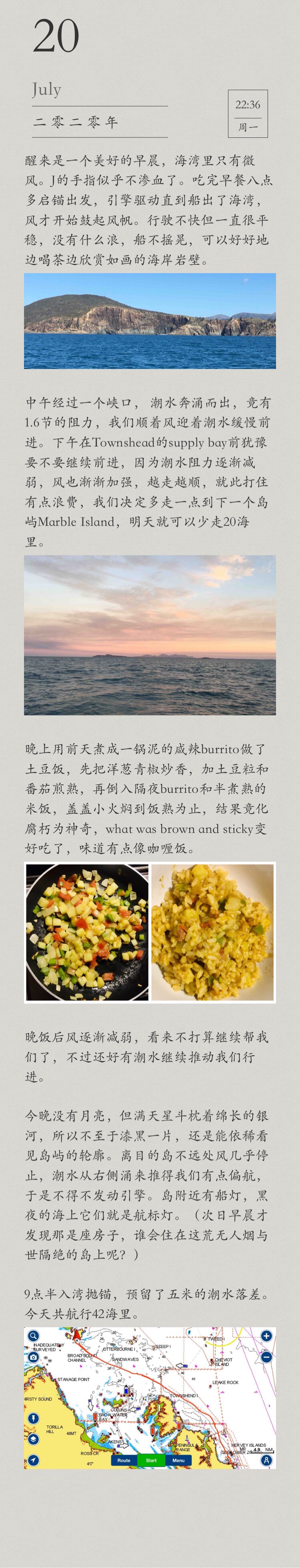Wind gradually weakened after dinner, and it seemed to decide not helping us anymore, but fortunately, the current continued to push us forward.