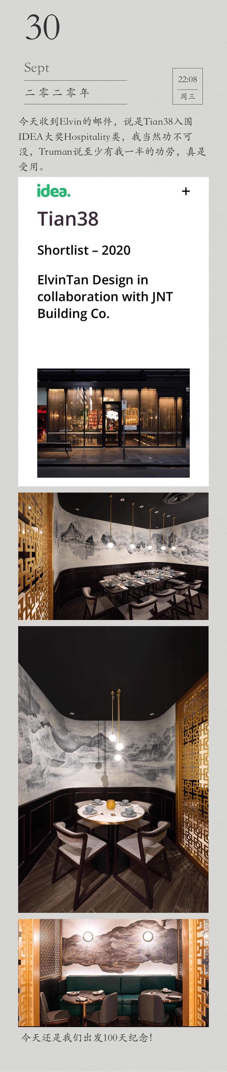 Today I got an email from Elvin saying that Tian38 was in a finalist for the IDEA Awards in the Hospitality category, which I feel my mural helped them to get the nomination and my friend Truman said I got at least half the credit, which might not be true but it was very nice of him to say so.