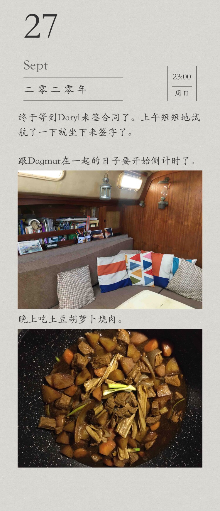 来到了2020年,我80岁,仍然顽固,还在研究小船。四个月后,朋友要把我的新船Exlex带到爱尔兰的Dingle。Exlex长5.8米,宽1.2米,吃水20厘米,空载排水量0.6吨。顺便提一下“Exlex”在拉丁文里是“法外”的意思(Ex意为外,Lex意为法)将她定为非法的还是欧盟娱乐船艇指令,他们不想要小船,因为大船的花销更多能带动经济,尽管造成污染也更大,船员也更不开心。我计划把Exlex试航到圣马德拉港,共1200海里,保持时速3节的话17天就能到达。2018年,我驾一艘短4厘米的船走相同的路线花了40天,有些不尽人意。改良版的新船会快得多吗? 时间会证明。根据这次试航我将计划一次更长的航行,最终目的地是新西兰的但尼丁,预计行驶186天,约13400海里,途径非洲南部和澳大利亚。我能做到吗?不知道。但不顽固的人是绝对做不到的。如此小的船航行这么远能装下足够的食物吗?希望如此,两年里我训练自己一天只吃一餐。饮用水呢?以前的航行中我每天只喝一升水,因此我将携带200升淡水,海水淡化器又贵又不可靠,带几个也没用。原计划登陆西澳大利亚,需要办签证,然而我得知必须打电话到澳大利亚办理后很生气,我情愿花点钱在食物上而不是长途电话上。签证的事太荒谬了,瑞典有澳洲大使馆,澳洲也肯定有电脑和电邮,为什么要如此刁难我?