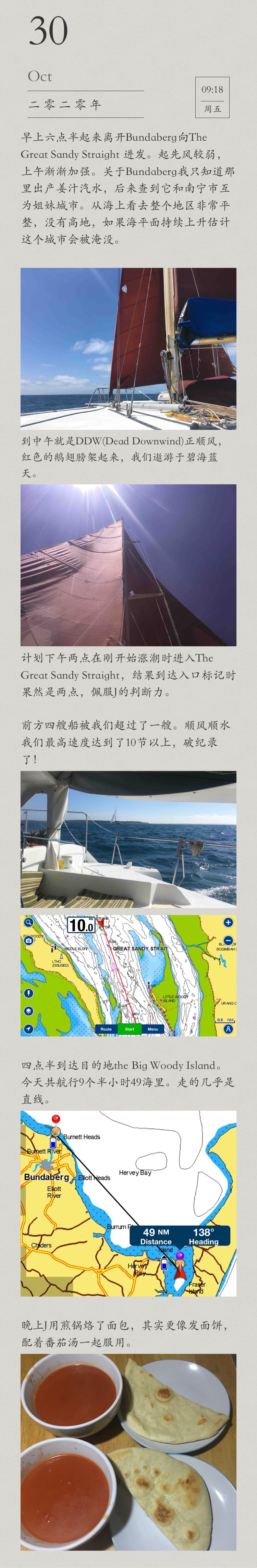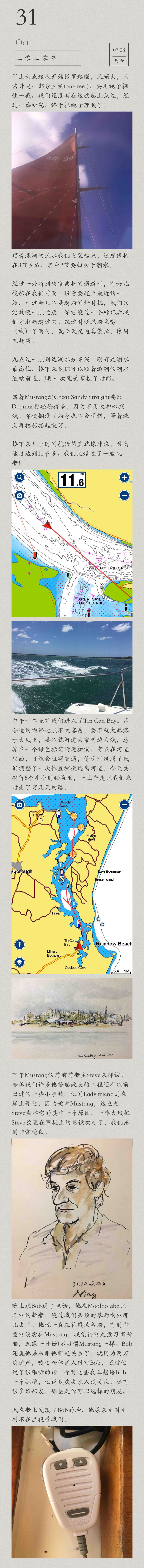 We entered Tin Can Bay before 12pm. It was not easy to find a suitable anchorage there, either too exposed to the wind, or the channel was too narrow and shallow on both sides. Finally we managed to anchor near a green marker, a bit in the channel, which might hinder the traffic. In the late afternoon wind was weakened, we adjusted our position slightly away from the channel. Today we sailed for 5.5 hours and 40 nautical miles. Within one morning we finished the distance that took us days to sail.